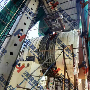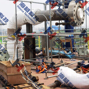 青島海越歷時近1年,經過大量模擬測試和不同加熱規范參數調整,掌握了電磁感應加熱在大型厚壁容器上的焊后熱處理技術。